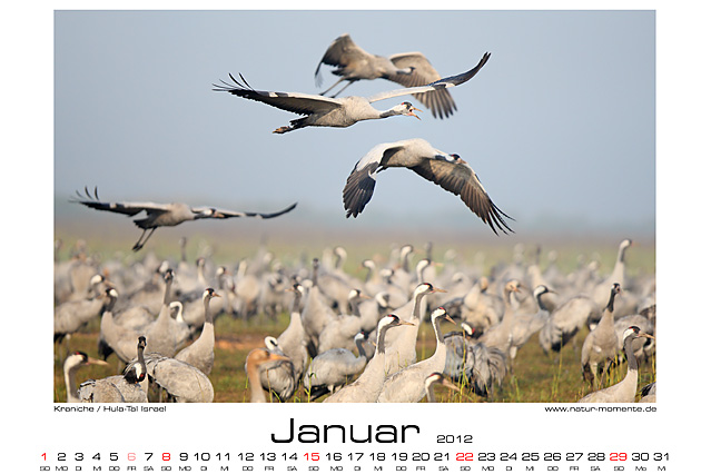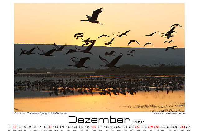 #12Kraniche im Flug bei Sonnenaufgang / Hula-Tal Israel