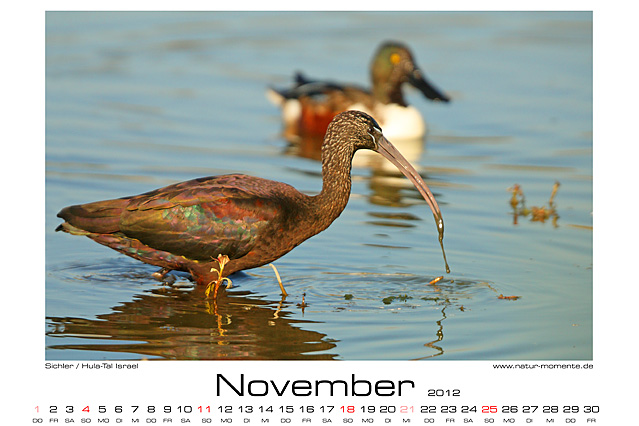 #11Sichler, Löffelente im Hintergrund / Hula-Tal Israel -