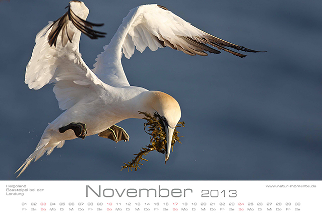 #11Helgoland / Basstölpel im Flug mit Tang -