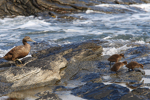 Norwegen / andere Seevögel #07Eiderente mit Küken an der Küste -
