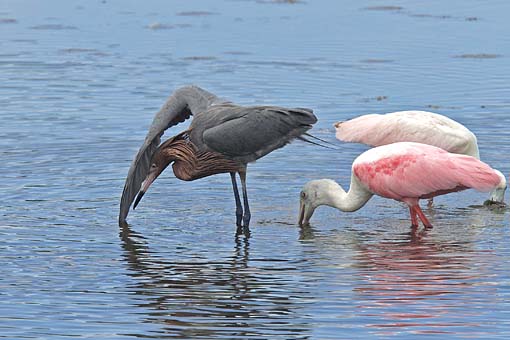 Florida / andere Wasservögel #03Reddishreiher und rosa Löffler -