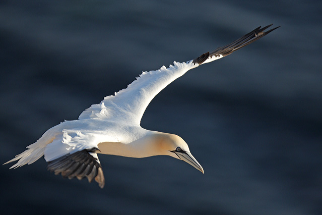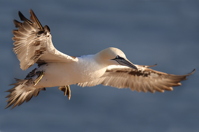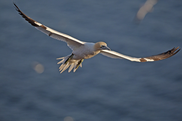 Vögel / Helgoland / Basstölpel Flug #01Basstölpel im Flug, Abendsonne -