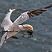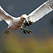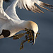 Vögel / Helgoland / Basstölpel Flug #06Basstölpel vor der Landung, mit Tang zum Nestbau -