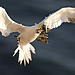 Vögel / Helgoland / Basstölpel Flug #11Basstölpel vor der Landung, mit Tang zum Nestbau -
