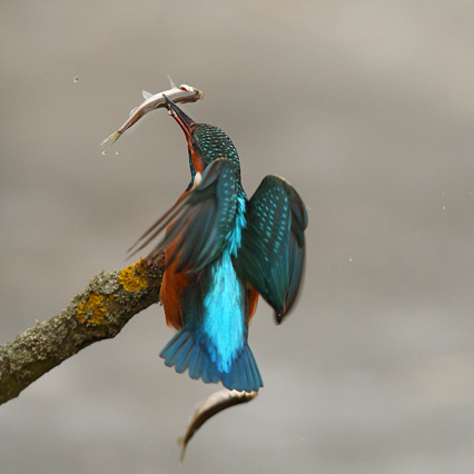 Vögel / Eisvogel / Hessen #08Eisvogel verliert einen Fisch bei der Landung -