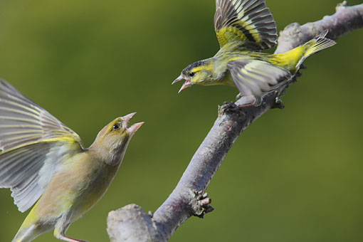 Vögel / vor der Haustür / Karlsruhe #14Grünfink und Zeisig im Futterstreit -
